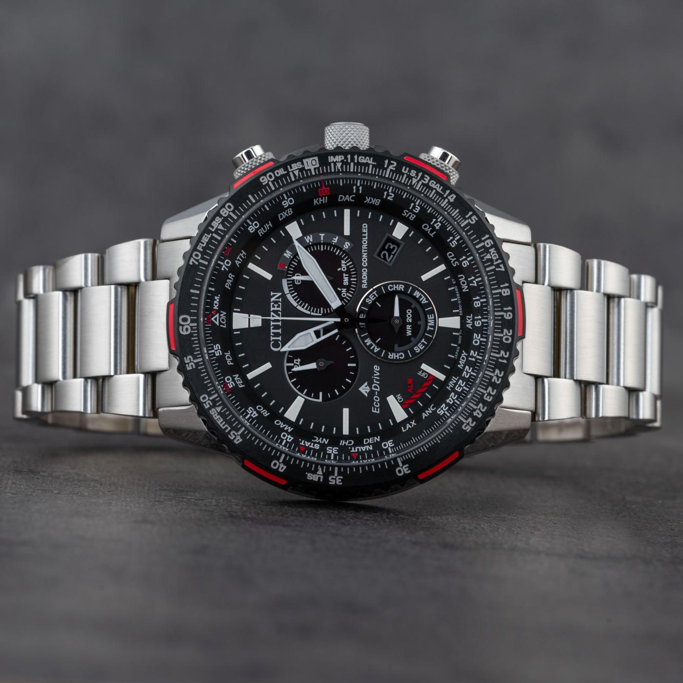 - Kronograf, Budilka, Radijsko upravljanje, Večni koledar, Svetovni čas, Luminiscenčne ročice, 24-urni številčnik, Štoparica